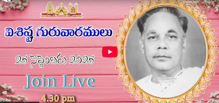 ఆదివారం 10/05 అక్టోబర్ నెల ఆరాధన కార్యక్రమం ఆన్లైన్ లో శ్రీమతి పొత్తూరి నాగ దివ్య గారు, శ్రీమతి అవ్వారి లక్ష్మి గారు, శ్రీమతి యర్ర రేణుక గారు, శ్రీ కోసూరి సత్యనారాయణ గారు, శ్రీ కుంట్ల ప్రసాద్ గారు, శ్రీ తమ్మిశెట్టి సత్యవల్లి శ్రీనివాస్ గారి...