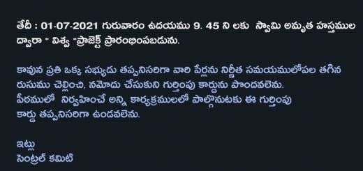 - Previous story ది.10 అక్టోబర్ 2019 తేది గురువారం విజయనగరం పీఠం శ్రీ విశ్వ విజ్ఞాన విద్యా ఆధ్యాత్మిక ఆశ్రమ ప్రాంగణంలో స్వామి వీక్లీ ఆరాధన నిర్వహించబడినది