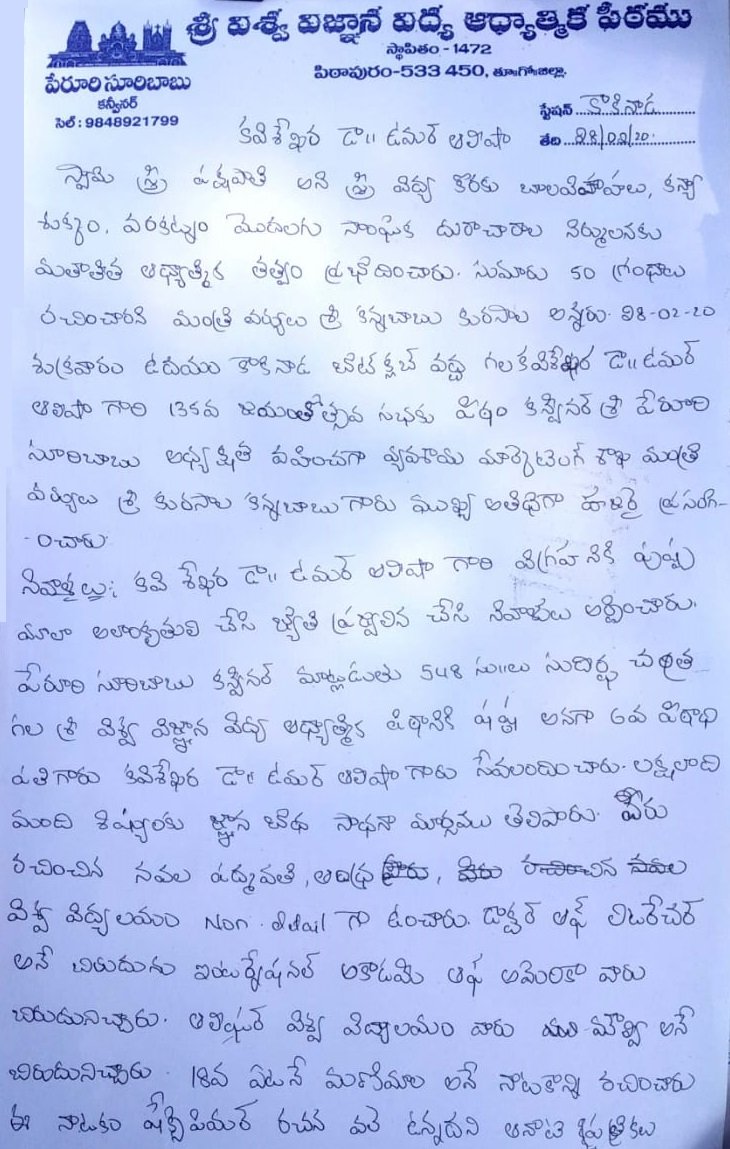 Tags: 135 Kavisekhara Dr.Umar Alisha28 Feb 2020Birthday CelebrationsDr Umar AlishaKakinadaSri Viswa Viznana Vidya Aadhyatmika peetham Pithapuram Ashram
