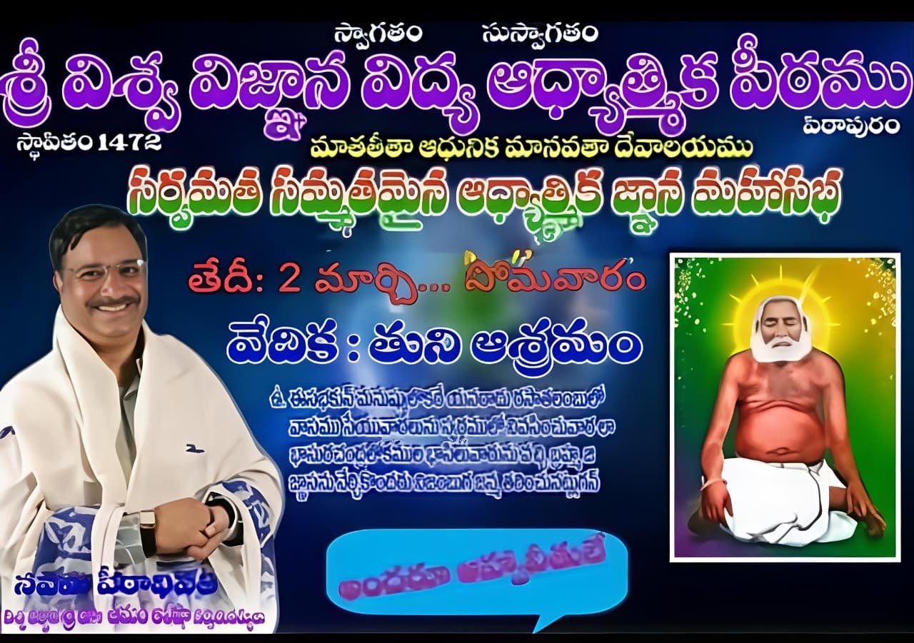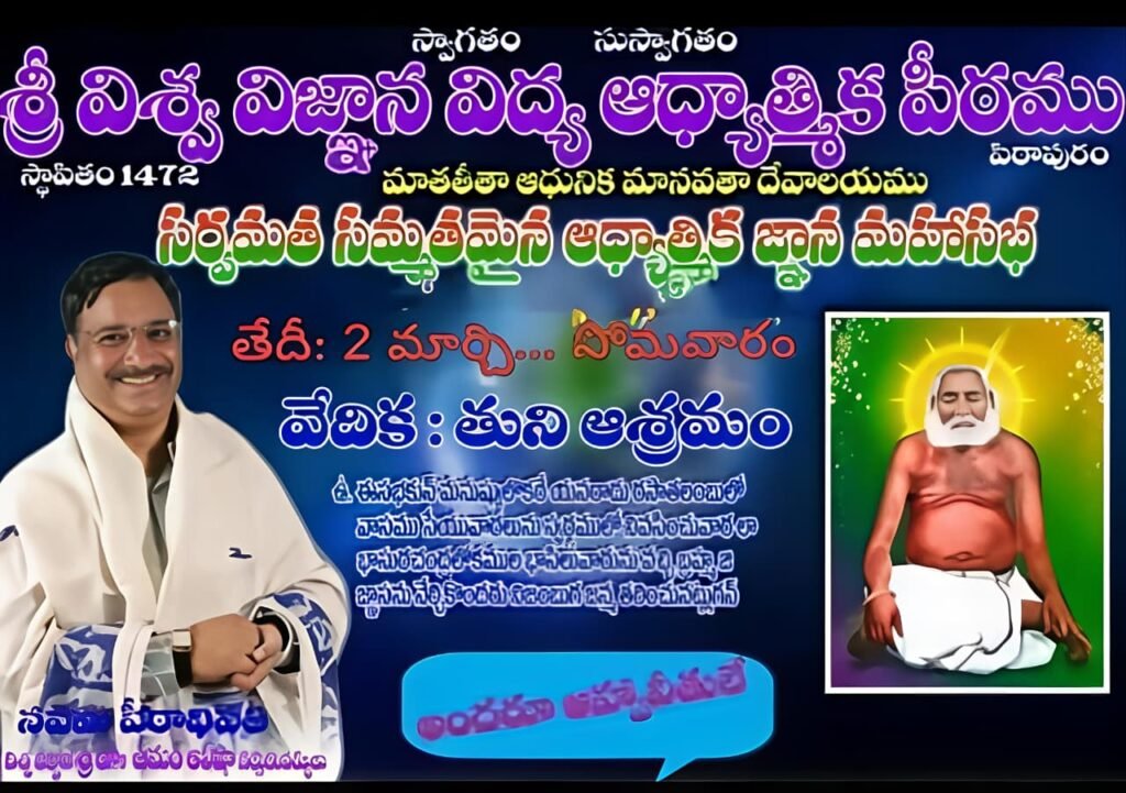 29th Anniversary Spiritual Meeting at Tuni on 2nd March 2026 | 29వ వార్షిక ఆధ్యాత్మిక మహాసభ by peethamwebadmin · March 2, 202629th Communal Harmony Meet@Tuni 2nd Mar 2026