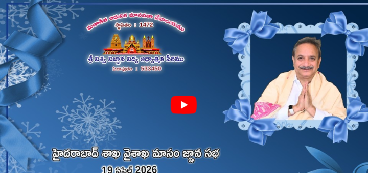 19 ఏప్రిల్ 2026 | వైశాఖ మాస అంతర్జాల సభ – మొదటి రోజు ఆరాధనా ప్రదేశాలు : హైదరాబాద్, విశాఖపట్నం, విజయనగరం, శ్రీకాకుళం, విజయవాడ, వినుకొండ, లక్ష్మీపురం