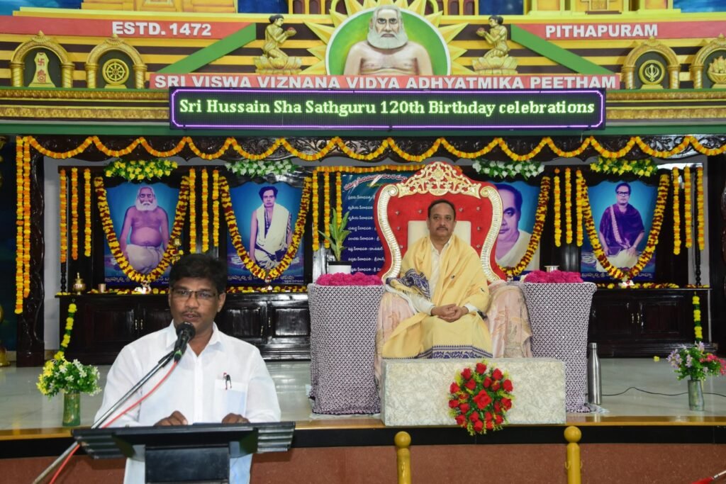 శ్రీ విశ్వ విజ్ఞాన విద్య ఆధ్యాత్మిక పీఠం సప్తమ పీఠాధిపతి అవతారి శ్రీ హుస్సేన్ షా 120వ జయంతిని పురస్కరించుకుని ప్రధాన ఆశ్రమ ప్రాంగణంలో మంగళవారం ఏర్పాటు చేసిన సభలో సద్గురువర్యులు అనుగ్రహ భాషణ చేసారు.