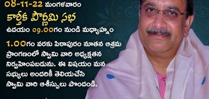Karthika Pournami Sabha | 05 November 2025 “ఆధ్యాత్మికతకు పరిపూర్ణత్వం కలిగించే కాలం కార్తికమాసం”-పీఠాధిపతి డాక్టర్ ఉమర్ ఆలీషా ఆధ్యాత్మికతకు పరిపూర్ణత్వం కలిగించే కాలం కార్తిక మాసం అని, కార్తిక దీపం చంద్రుడి యొక్క తేజస్సుతో కలిసి మనలో జ్ఞాన దీపాన్ని వెలిగిస్తుందని కార్తిక పౌర్ణమిని...