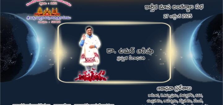 ఆదివారం 10/05 అక్టోబర్ నెల ఆరాధన కార్యక్రమం ఆన్లైన్ లో శ్రీమతి పొత్తూరి నాగ దివ్య గారు, శ్రీమతి అవ్వారి లక్ష్మి గారు, శ్రీమతి యర్ర రేణుక గారు, శ్రీ కోసూరి సత్యనారాయణ గారు, శ్రీ కుంట్ల ప్రసాద్ గారు, శ్రీ తమ్మిశెట్టి సత్యవల్లి శ్రీనివాస్ గారి...