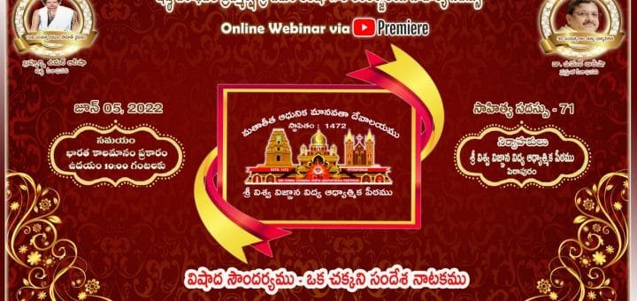 సాహిత్య సదస్సు – 71 అంశము : విషాద సౌందర్యము – ఒక చక్కని సందేశ నాటకము సాహిత్య కర్త : డాక్టర్ N.V.N చారి గారు, ఓరుగల్లుయాంకర్ : శ్రీమతి ఉమా ముకుంద, కాకినాడ