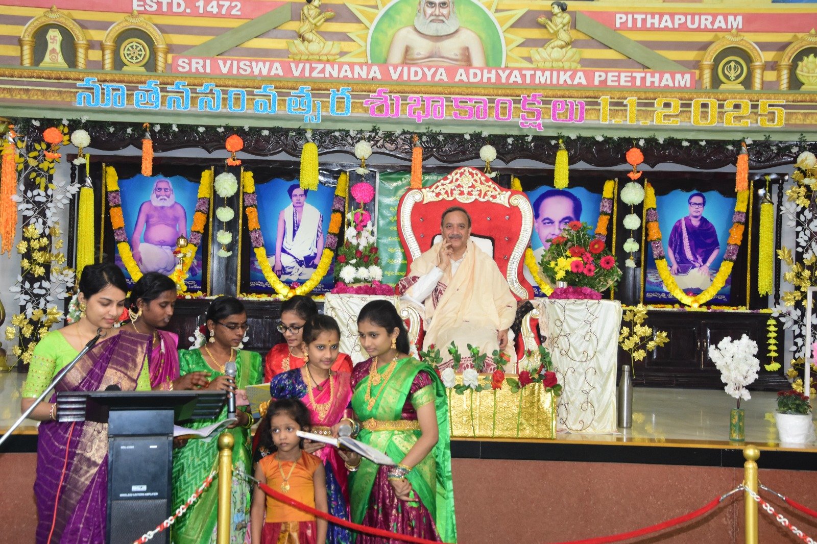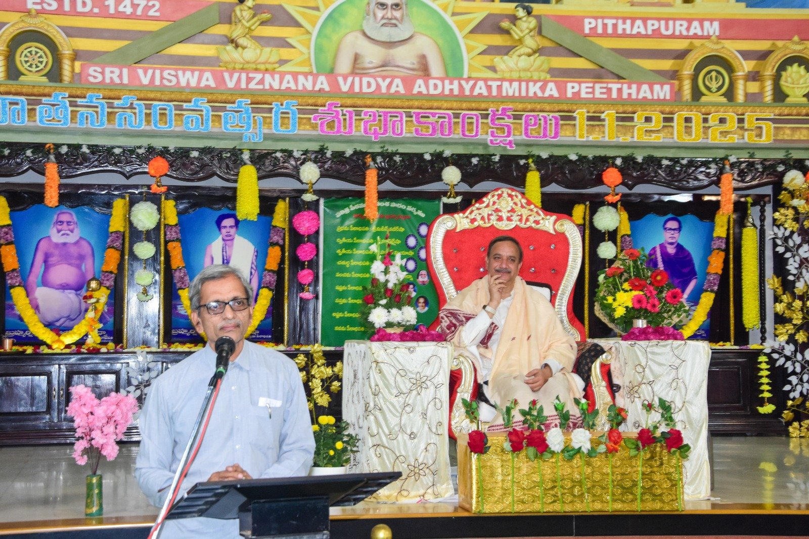 జీవితం యొక్క అర్థాన్ని పరమార్థంగా మార్చుకొనే మహోన్నత మానవతా దేవాలయం శ్రీ విశ్వ విజ్ఞాన విద్య ఆధ్యాత్మిక పీఠం అని పీఠాధిపతి డా. ఉమర్ ఆలీషా స్వామివారు అనుగ్రహ భాషణ చేశారు. 1-1-25 బుధవారం ఉదయం ప్రధాన ఆశ్రమంలో స్వామి వారి అధ్యక్షతన ఏర్పాటు చేసిన ఆంగ్ల నూతన సంవత్సర మహాసభను ఉద్దేశించి ప్రసంగించారు.
