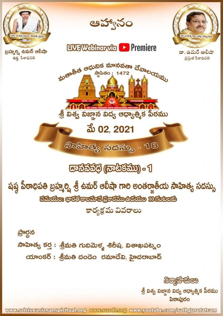 సాహిత్య సదస్సు – 18 | Webinar on Literature – 18: 02nd May 2021