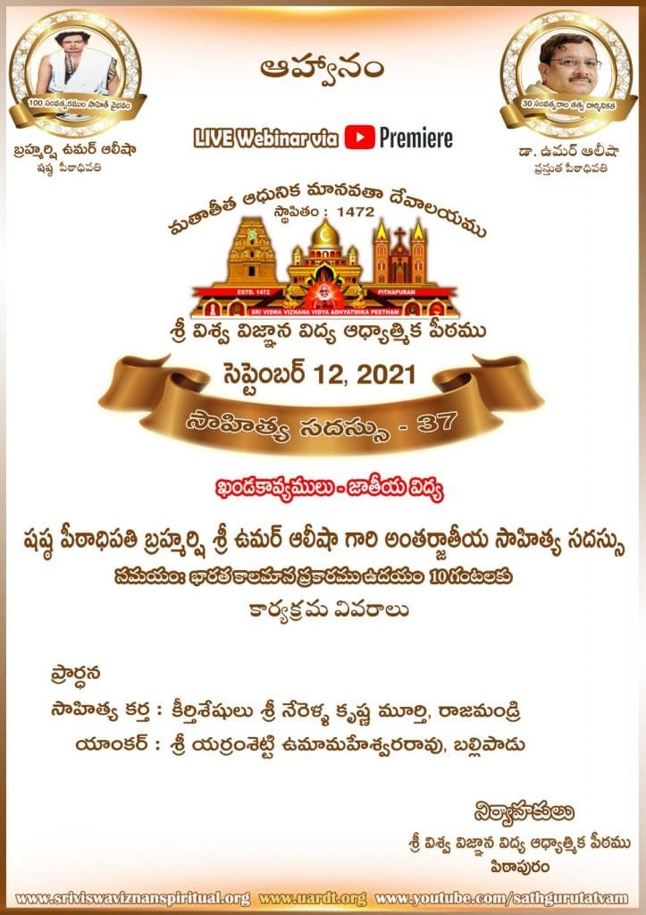 సాహిత్య సదస్సు – 37 | Webinar on Literature – 37: 12th September 2021 by publisher9 · September 12, 2021సాహిత్య సదస్సు – 37| ఖండకావ్యములు – జాతీయ విద్య