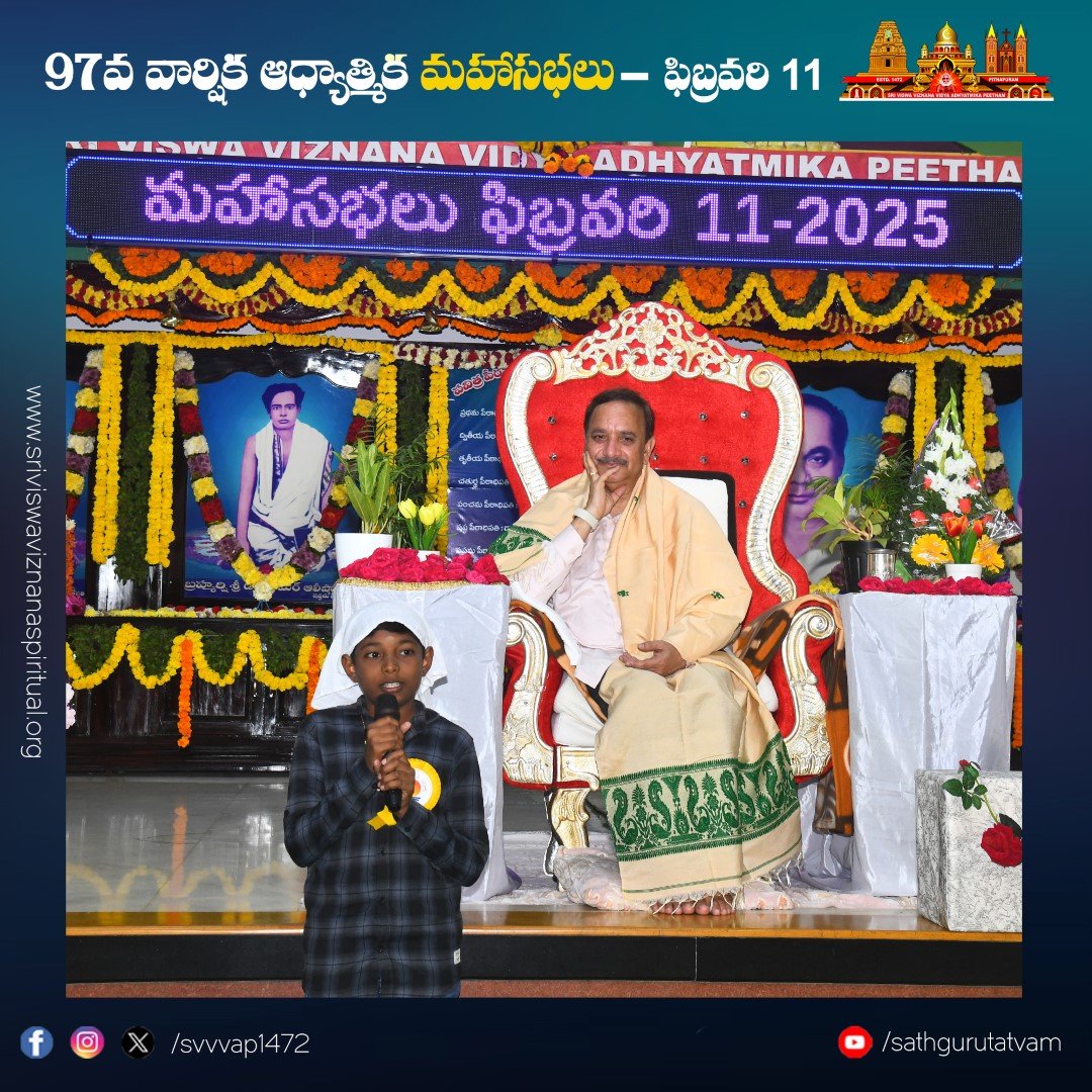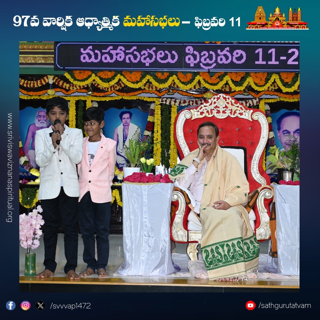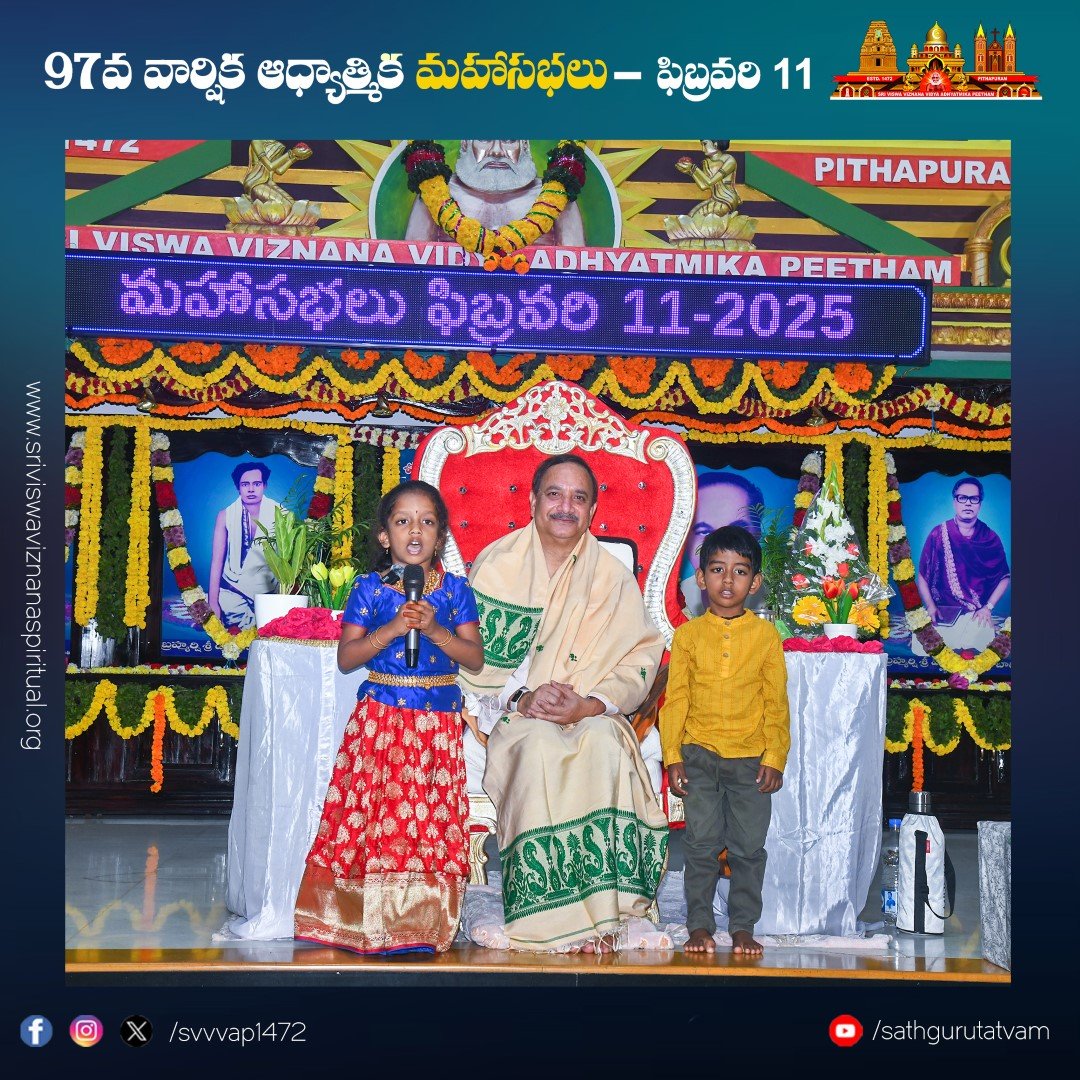 పీఠం నిర్వహిస్తున్న తాత్త్విక బాలవికాస్ ద్వారా ఆధ్యాత్మిక తరగతుల్లో శిక్షణ పొందిన చిన్నారుల ప్రసంగాలు సభికులను విశేషంగా ఆకట్టుకున్నాయి. సభలో నిర్వహించిన సంగీత విభావరిలో ఉమా ముకుంద బృందం ఆలపించిన కీర్తనలు సభను రంజింప చేసాయి. సభలో పాల్గొనడానికి దేశ, విదేశాల నుండి విచ్చేసిన సభ్యులకు ఆశ్రమం వద్ద ఉచిత భోజన సౌకర్యం, బస్, ఆటో సౌకర్యాలను వృద్ధులకు, దివ్యాంగులకు వీల్ ఛైర్ సదుపాయాలు కల్పించారు.