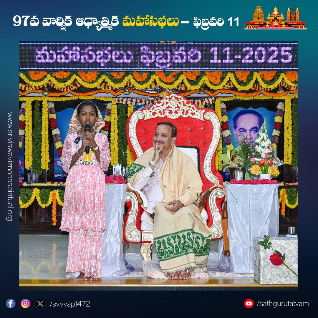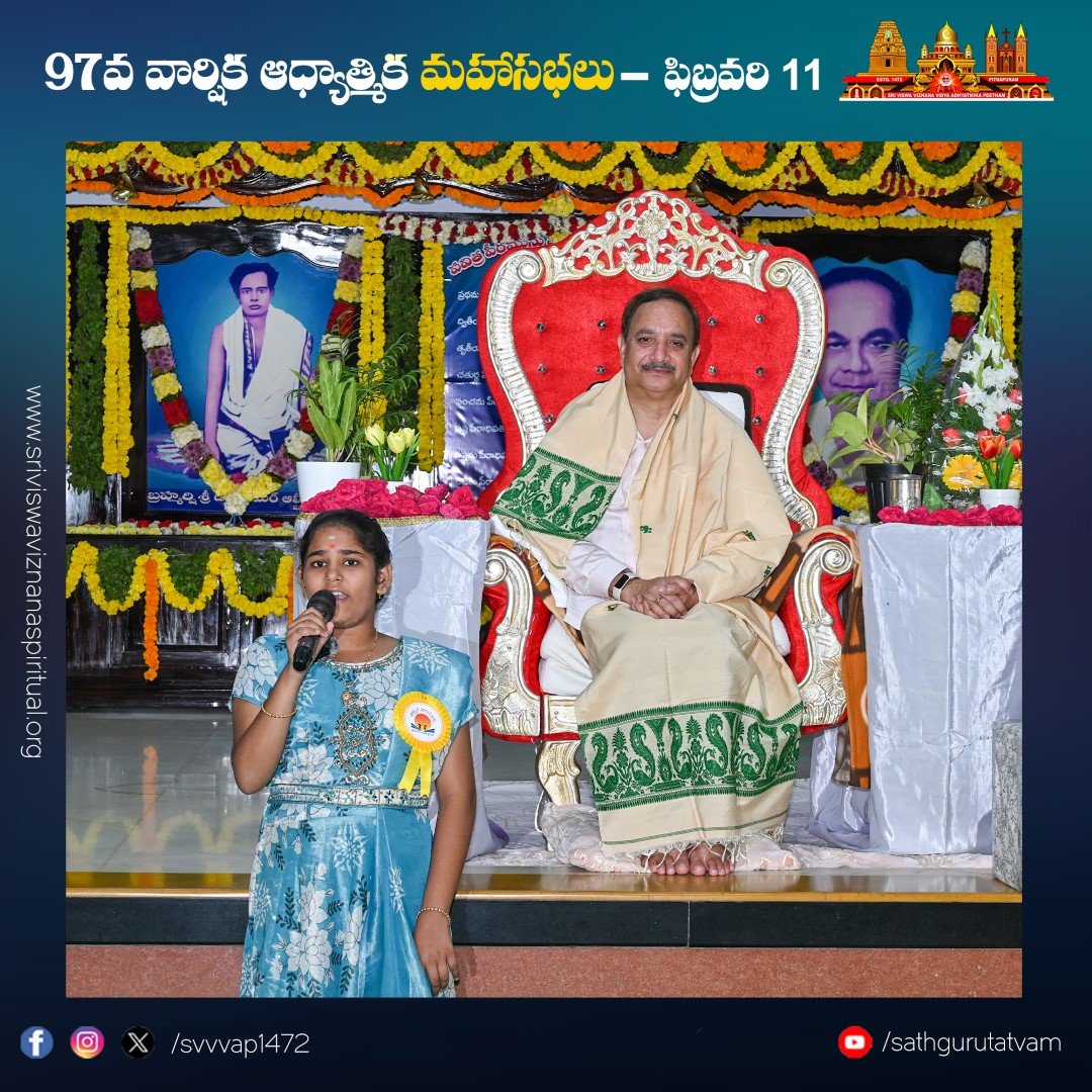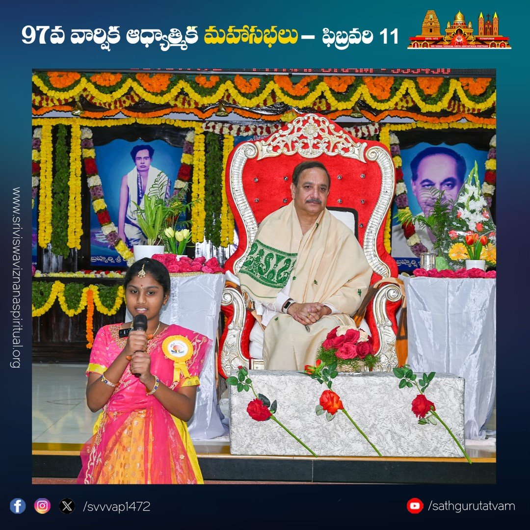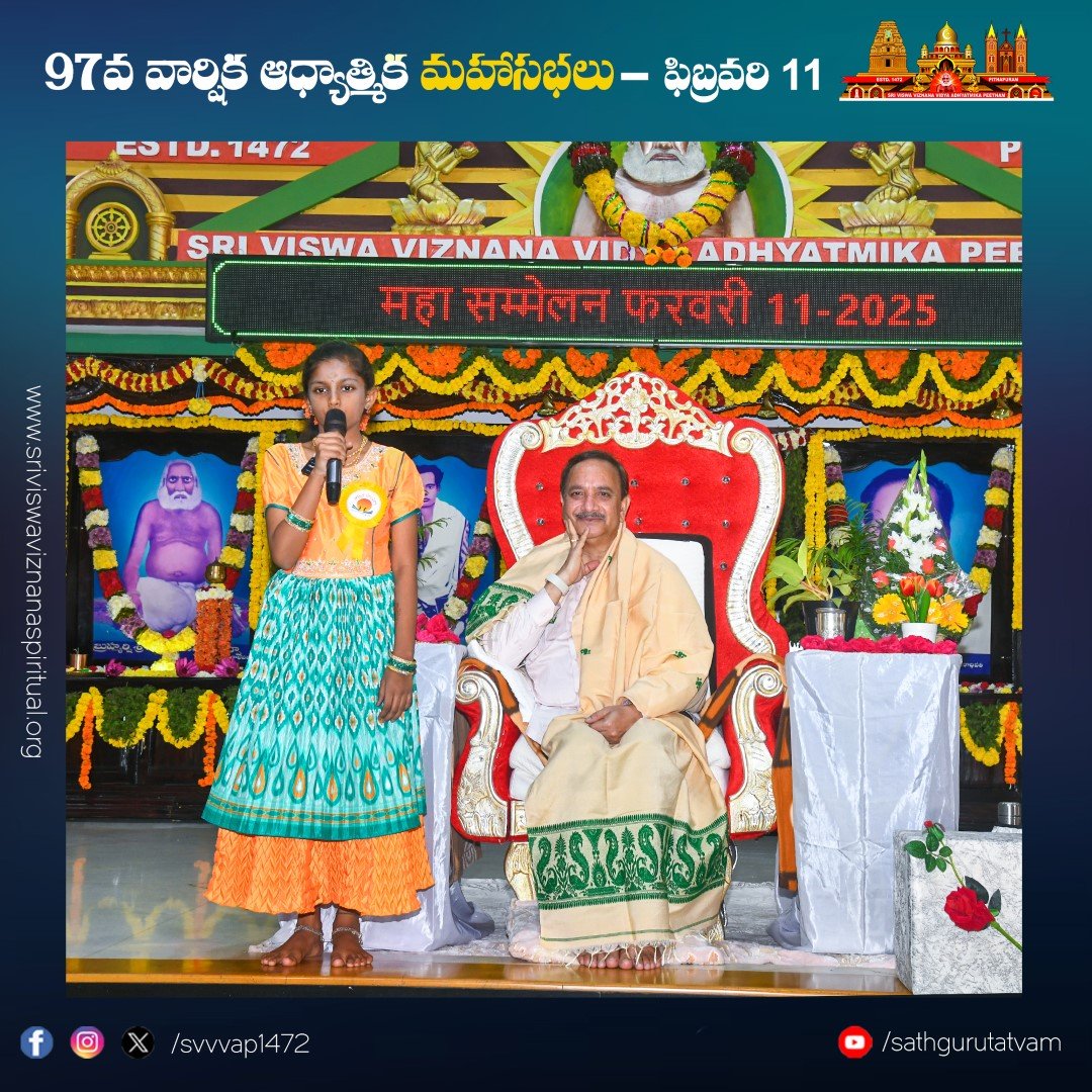 పీఠం నిర్వహిస్తున్న తాత్త్విక బాలవికాస్ ద్వారా ఆధ్యాత్మిక తరగతుల్లో శిక్షణ పొందిన చిన్నారుల ప్రసంగాలు సభికులను విశేషంగా ఆకట్టుకున్నాయి. సభలో నిర్వహించిన సంగీత విభావరిలో ఉమా ముకుంద బృందం ఆలపించిన కీర్తనలు సభను రంజింప చేసాయి. సభలో పాల్గొనడానికి దేశ, విదేశాల నుండి విచ్చేసిన సభ్యులకు ఆశ్రమం వద్ద ఉచిత భోజన సౌకర్యం, బస్, ఆటో సౌకర్యాలను వృద్ధులకు, దివ్యాంగులకు వీల్ ఛైర్ సదుపాయాలు కల్పించారు.