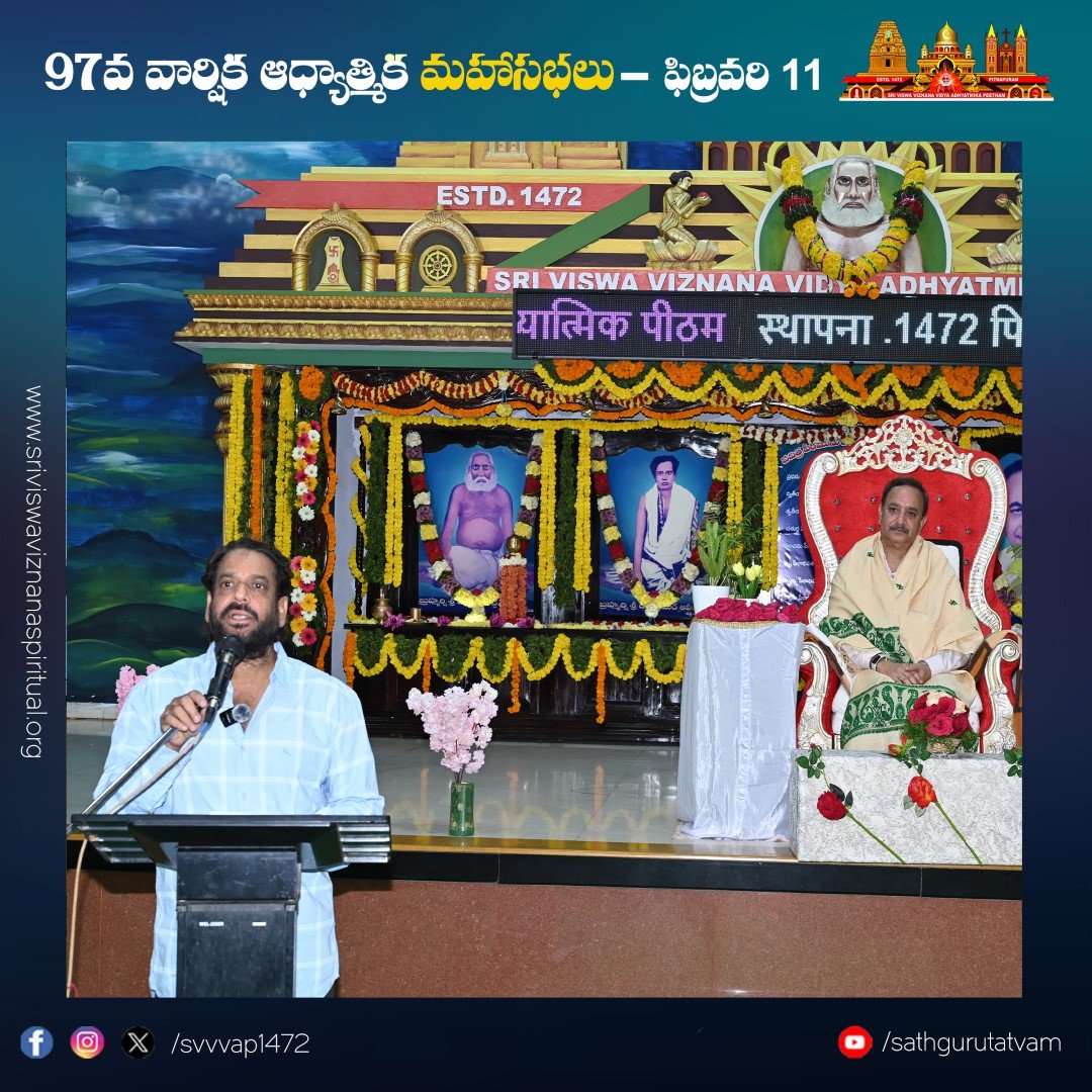 పీఠాధిపతి సోదరుడు అహ్మద్ అలీషా మాట్లాడుతూ శ్రీ విశ్వవిజ్ఞాన విద్యా ఆధ్యాత్మిక పీఠం పూర్వ పీఠాధిపతుల యొక్క విశిష్టత, మాతృమూర్తుల యొక్క త్యాగాలు, పీఠం సభ్యుల సేవలు సవివరంగా సభకు వివరించారు. వందలాది సంవత్సరాలుగా, వేదాంత విద్యను కాలానుగుణ్యంగా సభ్యులకు ఉపదేశిస్తున్న ఏకైక పీఠం శ్రీ విశ్వ విజ్ఞాన విద్యా ఆధ్యాత్మిక పీఠం అని పేర్కొన్నారు.