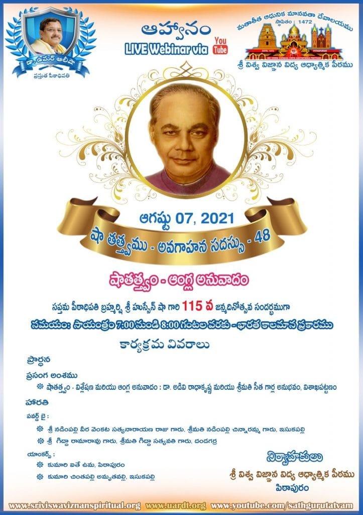 షా తత్త్వము – అవగాహన సదస్సు 48 | SHA-THATHVAMU Webinar-48 – 07th August 2021 by publisher9 · August 7, 2021“షా తత్త్వము – అవగాహన సదస్సు – 48” లో “షాతత్త్వం – ఆంగ్ల అనువాదం”
