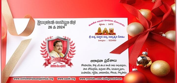 26 మే 2023 | వైశాఖ మాస అంతర్జాల సభ – పదహారవ రోజు ఆరాధనా ప్రదేశాలు : కోనపాపపేట, కొత్త ఎస్.ఈ.జి కాలనీ రామ రాఘవపురం, పాత చోడిపల్లిపేట, మల్లివారి తోట, పెరుమాళ్ళపురం, పంపాదిపేట, గడ్డిపేట, వాకదారిపేట, గోరింట, గొర్శపాలెం
