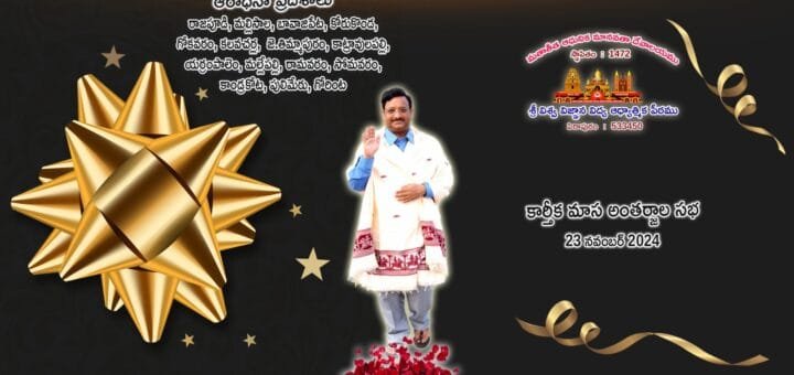 26 ఏప్రిల్ 2023 | వైశాఖ మాస అంతర్జాల సభ – ఆరవ రోజు ఆరాధనా ప్రదేశాలు : జె.తిమ్మాపురం, కాట్రావులపల్లి, కట్టమూరు, సూరంపాలెం, యర్రంపాలెం, తాళ్ళూరు, మల్లేపల్లి, బొర్రంపాడు, బూరుగుపూడి, రామవరం, సోమవరం, కాండ్రకోట, తాటిపర్తి, తూర్పుపాకల, పులిమేరు, గోరింట