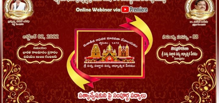 USA – 02 అక్టోబర్ 2022 ఆదివారం అమెరికాలో అక్టోబర్ నెల ఆరాధన కార్యక్రమం అంతర్జాలంలో శ్రీ కుంట్ల ప్రసాద్ గారు, శ్రీమతి కుంట్ల రాణి గారు, శ్రీమతి కోసూరి దివ్యవాణి గారు, శ్రీమతి చేనుమోలు రామలక్ష్మి గారు మరియు శ్రీ తమ్మిశెట్టి సత్యవల్లి శ్రీనివాస్ గారి...