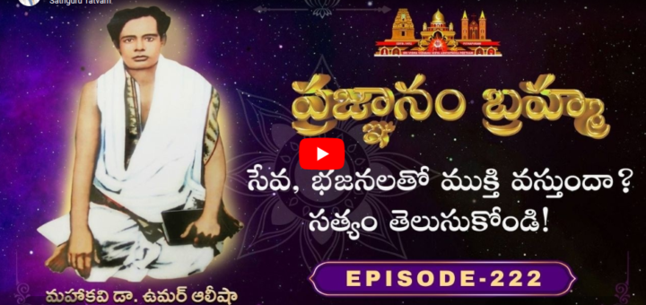 షష్ట పీఠాథిపతి బ్రహ్మర్షి శ్రీ ఉమర్ ఆలీషా వారి సూఫీవేదాంత దర్శము అంతర్జాల సదస్సు “ప్రజ్ఞానం బ్రహ్మ” “ప్రజ్ఞానం బ్రహ్మ” ఎపిసోడ్ – 222 వక్తలు : 454 వ పద్యంతపముల్ చేసి స్వతంత్రులై దివిని సందర్శించు వారుండ యేతపముల్ సేయక సాధుసేవ భజనాదర్శంబుల న్నమ్మి మేమపవర్గంబు...