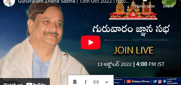 Online Donation for Annadanam in Thursday Aaradhana, MahaSabhas and Normal Sabhas Register your name for meditation Programme Thursday Sabha , 29-Sep-2022 | Online only Follow us on Facebook