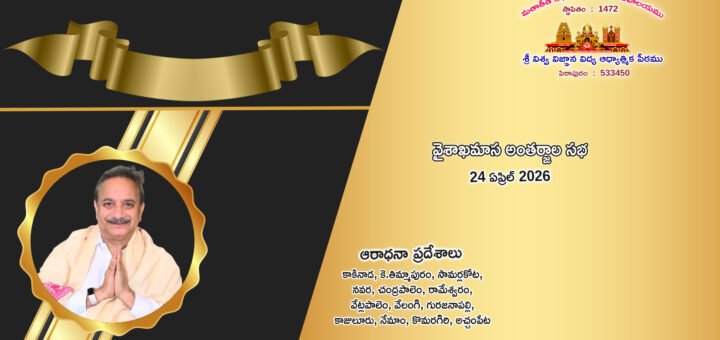 24 ఏప్రిల్ 2026 | వైశాఖ మాస అంతర్జాల సభ – ఐదవ రోజు ఆరాధనా ప్రదేశాలు : కాకినాడ, కె.తిమ్మాపురం, సామర్లకోట, నవర, చంద్రపాలెం, రామేశ్వరం, వేట్లపాలెం, వేలంగి, గురజనాపల్లి, కాజులూరు, నేమాం, కొమరగిరి, అచ్చంపేట