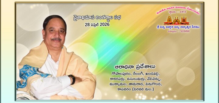 28 ఏప్రిల్ 2026 | వైశాఖ మాస అంతర్జాల సభ – తొమ్మిదవ రోజు ఆరాధనా ప్రదేశాలు : గోపాలపురం, రేలంగి, ఖండవల్లి, కాకరపర్రు, ఉసులుమర్రు, వేలివెన్ను, ముక్కామల, తామరాడ, పెనుగొండ, కాపవరం (పెరవలి మం.)