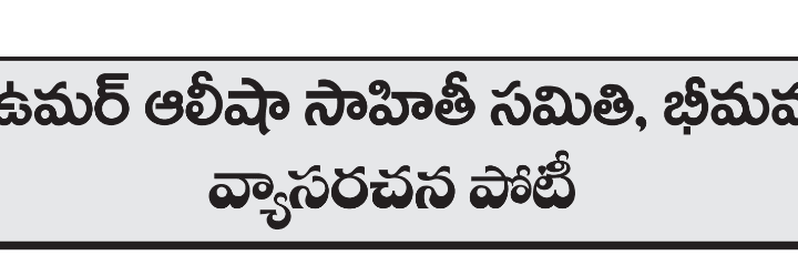 డా. ఉమర్ ఆలీషా సాహితీ సమితి , భీమవరం వ్యాసరచన పోటీ డా॥ఉమర్ ఆలీషా సాహితీ సమితి రిజిష్టర్డు నెం.171/95 19-22-6 బ్యాంకు కాలనీ, భీమవరం డా॥ఉమర్ ఆలీషా “బర్హిణీదేవి” అనే చారిత్రక రూపమైన కావ్యాన్ని మత సామరస్యం, సహగమన నిషేధం ప్రధానాంశాలుగా రచించారు. ది. 23...