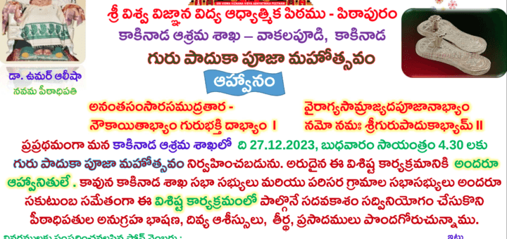 December 27th 2023, కాకినాడ సభకు ఆహ్వానం SRI VISWA VIZNANA VIDYA AADHYATMIKA PEETHAM