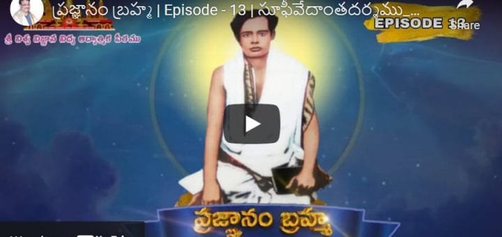 షష్ట పీఠాథిపతి బ్రహ్మర్షి శ్రీ ఉమర్ ఆలీషా వారి సూఫీవేదాంత దర్శము అంతర్జాల సదస్సు “ప్రజ్ఞానం బ్రహ్మ” “ప్రజ్ఞానం బ్రహ్మ” ఎపిసోడ్ – 13 వక్తలు :చిరంజీవి ఎండూరి ఉషాకిరణ్, అత్తిలిచిరంజీవి సంతోష్, గోరఖ్పూర్కుమారి చింతపల్లి అమృతవల్లి, ఇసుకపల్లి 24వ పద్యము:అతనిజనకుండు బాల్యంబునందు పోయెనంత తత్త్వవిజ్ఞానంబు నభ్యసించుకొఱకు...