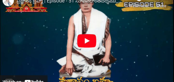 షష్ట పీఠాథిపతి బ్రహ్మర్షి శ్రీ ఉమర్ ఆలీషా వారి సూఫీవేదాంత దర్శము అంతర్జాల సదస్సు “ప్రజ్ఞానం బ్రహ్మ” “ప్రజ్ఞానం బ్రహ్మ” ఎపిసోడ్ – 51వక్తలు : శ్రీ గొసుల కరుణ ప్రసాద్, హైదరాబాద్ శ్రీ దొండపాటి వెంకట సుబ్బారావు, సింగరాజుపాలెం 108 వ పద్యముఏదియు వేరుగాదు పరికించిన...
