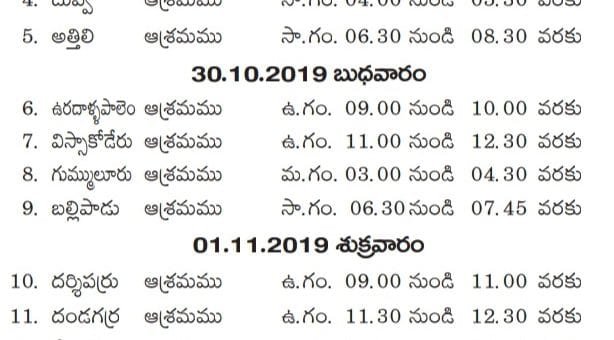 2019 – సద్గురువర్యుల కార్తీకమాస పర్యటన వివరములు 29 అక్టోబర్ 2019 నుండి 17 నవంబర్ 2019 వరకు