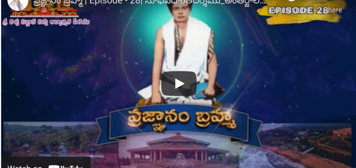 షష్ట పీఠాథిపతి బ్రహ్మర్షి శ్రీ ఉమర్ ఆలీషా వారి సూఫీవేదాంత దర్శము అంతర్జాల సదస్సు “ప్రజ్ఞానం బ్రహ్మ” “ప్రజ్ఞానం బ్రహ్మ” ఎపిసోడ్ – 26 వక్తలు : శ్రీమతి నండూరి సువర్చలా దేవి, హైదరాబాద్ శ్రీమతి కోర్ర వరలక్ష్మి,కాకినాడ 55వ పద్యము.పరమపవిత్ర యీ వెలది పండితురాలు నితాంత...