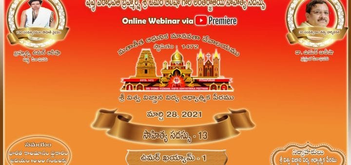 28 మార్చి 2021 ఆదివారం “సాహిత్య సదస్సు – 13” – ఆన్లైన్ లో భారత కాలమానం ప్రకారం ఉదయం 10.00 గంటలకు