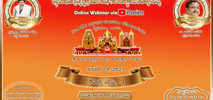 17 జనవరి 2021 ఆదివారం “సాహిత్య సదస్సు – 4” – ఆన్లైన్ లో భారత కాలమానం ప్రకారం ఉదయం 10.00 గంటలకు.