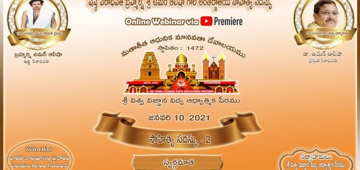 02 జనవరి 2021 శనివారం “షా తత్త్వము ఆధ్యాత్మిక అవగాహన సదస్సు 17” – ఆన్లైన్ లో భారత కాలమానం ప్రకారం సాయంత్రం 7.00 నుండి 8.00 వరకు నిర్వహించబడినది.