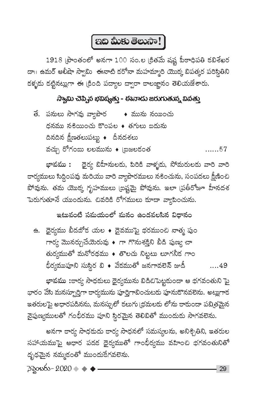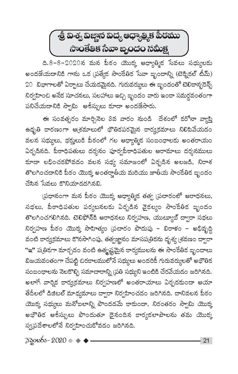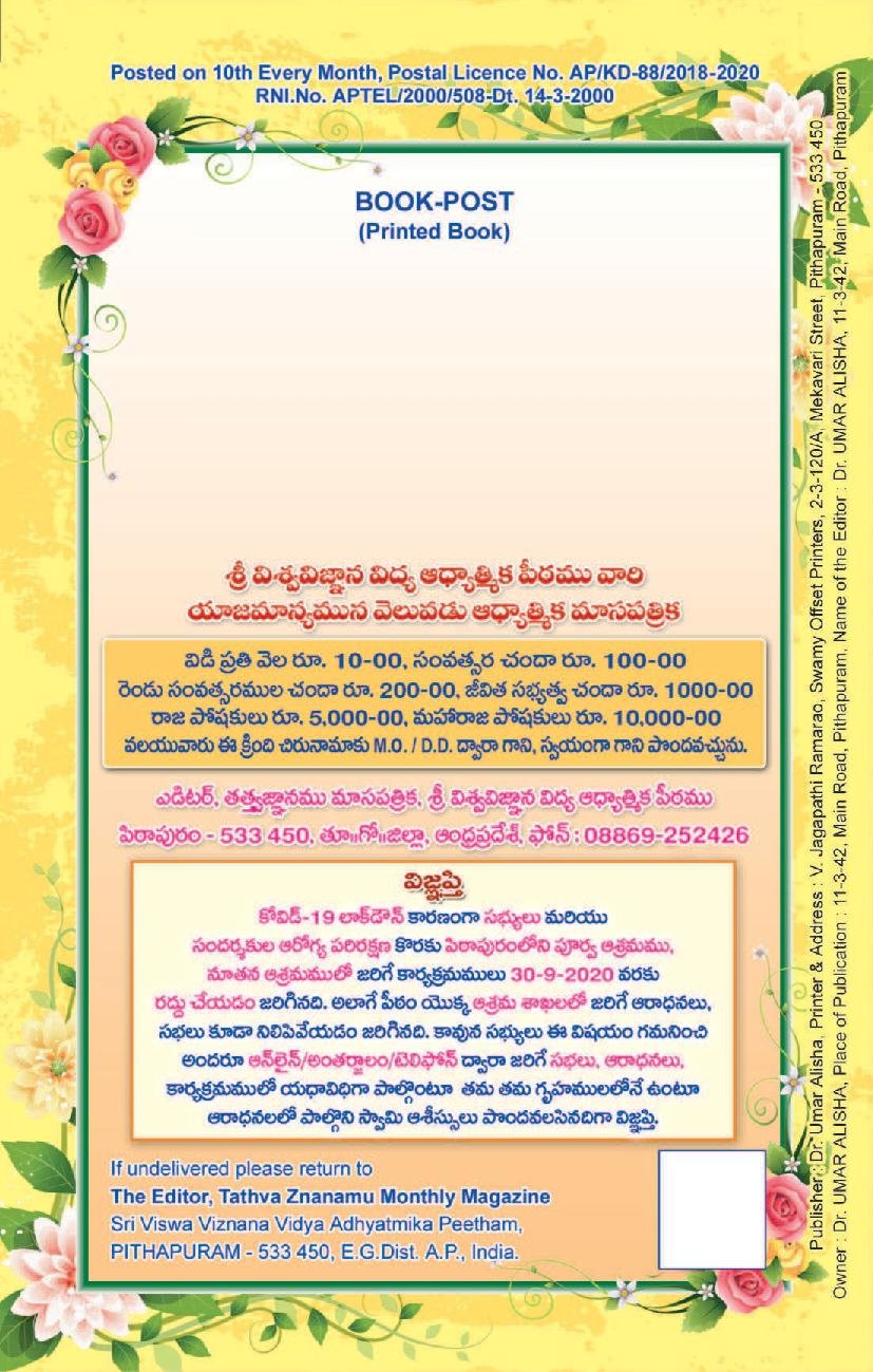 Tags: 14 September 2020Dr Umar AlishaMonthly MagazinePithapuramSeptember 2020Sri Viswa Viznana Vidya Aadhyatmika peetham Pithapuram AshramTatwajnanam