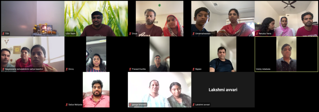 ఆదివారం 06/01 జూన్ నెల ఆరాధన కార్యక్రమం ఆన్లైన్ లో శ్రీ అడబాల వెంకటేశ్వర రావు గారు, శ్రీమతి చేనుమోలు రామలక్ష్మి గారు, శ్రీ తమ్మిశెట్టి సత్యవల్లి శ్రీనివాస్ గారి గృహములలో నిర్వహించబడినది.