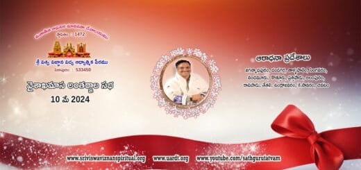 USA – 02 ఏప్రిల్ 2023 ఆదివారం అమెరికాలో ఏప్రిల్ నెల ఆరాధన కార్యక్రమం అంతర్జాలంలో శ్రీమతి చెనుమోలు రామలక్ష్మి గారు, శ్రీమతి కోసూరి దివ్యవాణి గారు మరియు శ్రీ తమ్మిశెట్టి సత్యవల్లి శ్రీనివాస్ గారి స్వగృహములలో నిర్వహించబడినది. అమెరికాలోని సభ్యులు పాల్గొన్నారు.