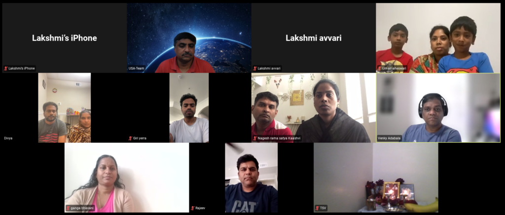 ఆదివారం 09/07 సెప్టెంబర్ నెల ఆరాధన కార్యక్రమం ఆన్లైన్ లో శ్రీమతి గోసుల గంగాభవాని గారు, శ్రీ కోసూరి సత్యనారాయణ గారు, శ్రీ తమ్మిశెట్టి సత్యవల్లి శ్రీనివాస్ గారి గృహములలో నిర్వహించబడినది.